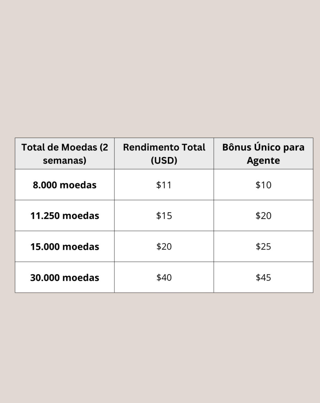 O bônus do agente será calculado com base no total de moedas ganhas nas duas primeiras semanas. O bônus será pago no final da segunda semana.Importante: Se a host não atingir as 8.000 moedas somadas nas duas semanas, o bônus e o salário não são processados. O acompanhamento da agência é vital!